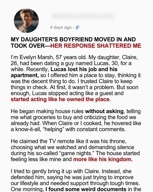 My Daughter’s Boyfriend Moved In and Took OverโHer Response Shattered Me