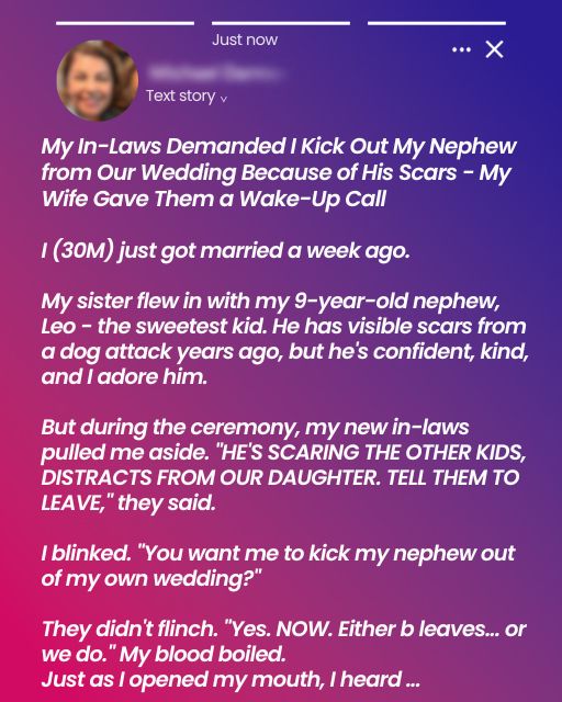 My In-Laws Demanded I Kick Out My Nephew from Our Wedding Because of His Scars โ My Wife Gave Them a Wake-Up Call