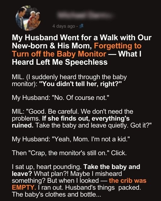 My Husband Went for a Walk with Our Newborn & His Mom, Forgetting to Turn off the Baby Monitor โ What I Heard Left Me Speechless