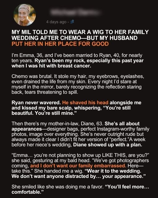 My Mother-In-Law Told Me To Wear A Wig To Her Family Wedding After ChemoโBut My Husband Put Her In Her Place For Good