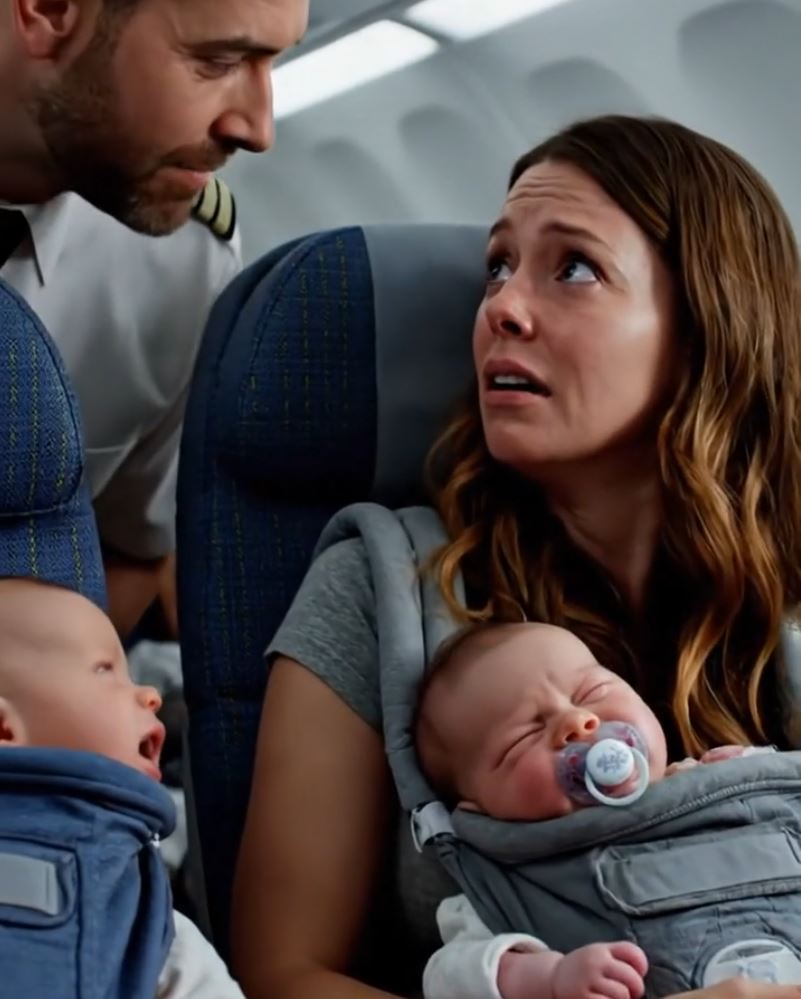 My Husband Changed Seats Mid-Flight, I Was Left Alone With Three Crying BabiesโThen The Pilot Walked Out And Said, โMay I Help You?โ