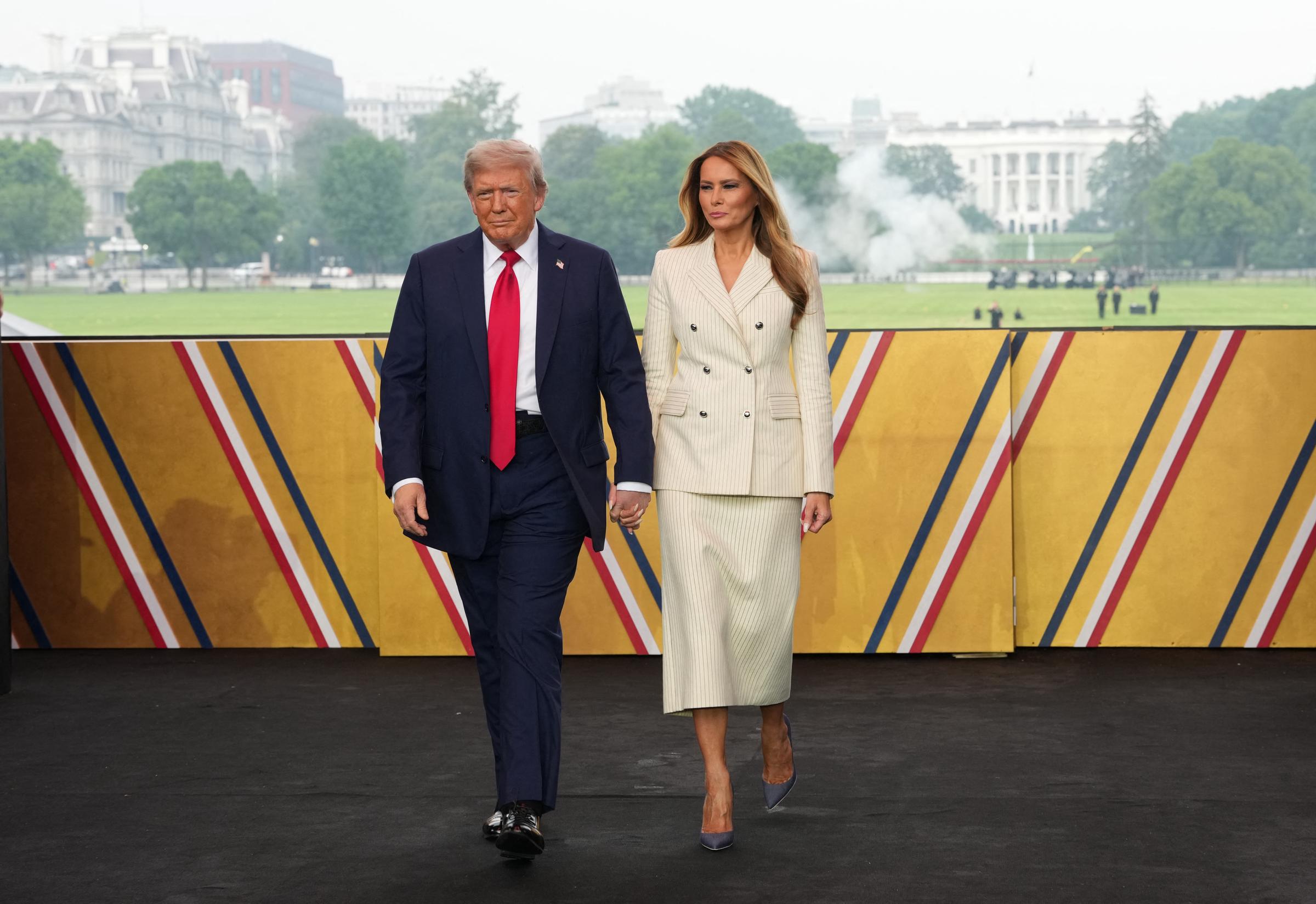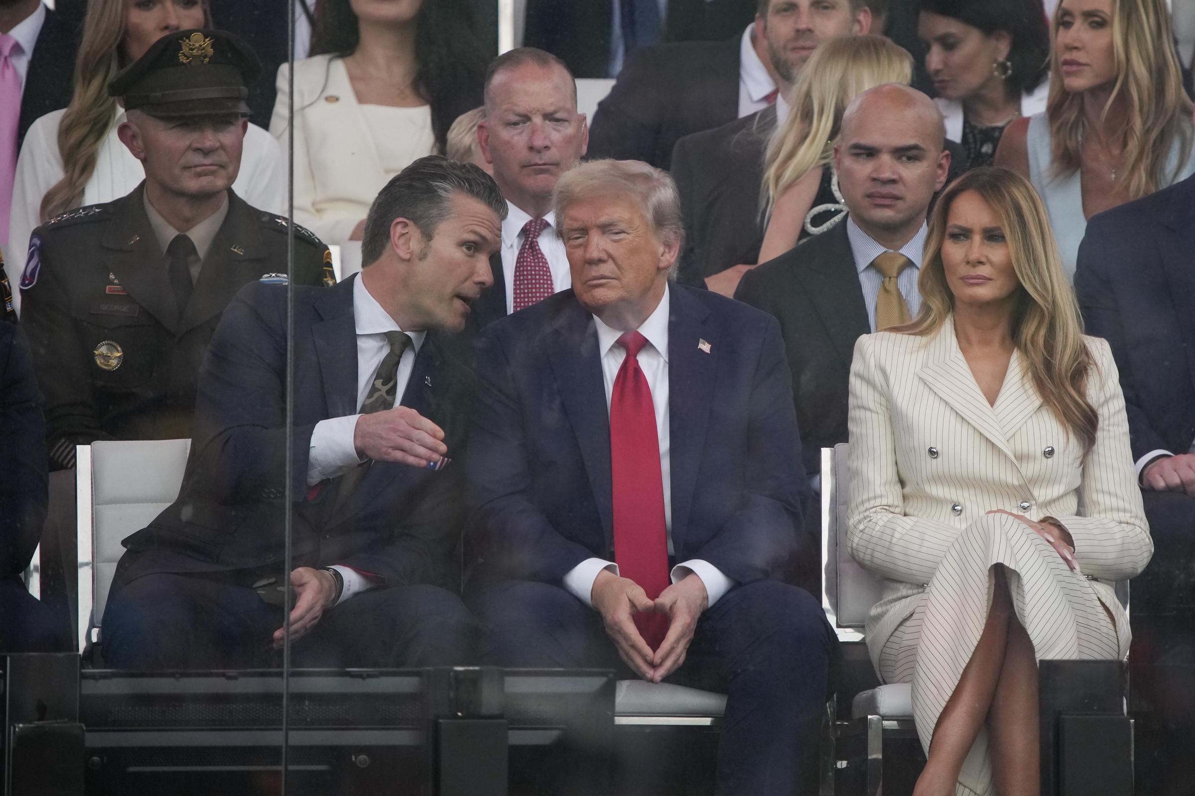 Throughout the parade, Donald’s choice to wear his usual business suit, rather than a military uniform, communicated his intent to maintain a respectful distance from the military personnel, honoring them rather than blending in.