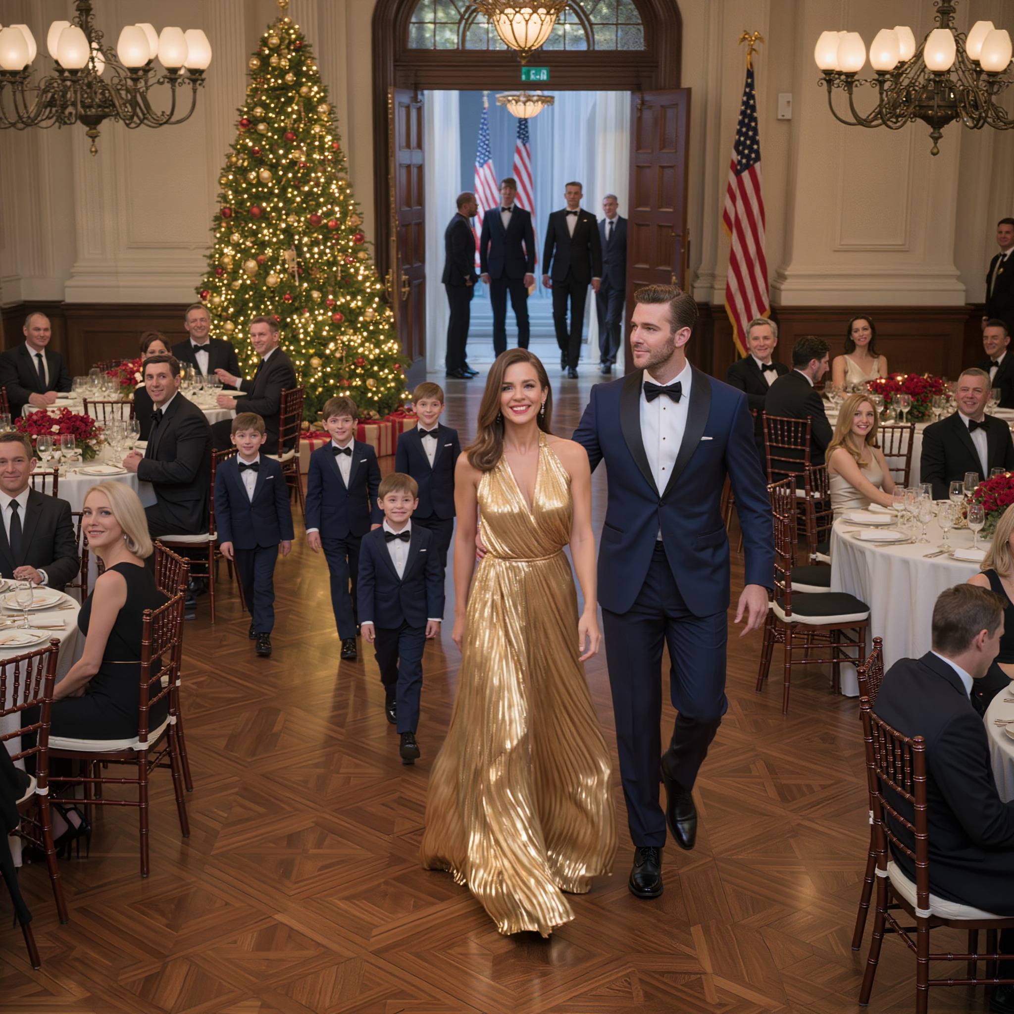 The couple rang in the New Year at Mar-a-Lago, their exclusive resort in Palm Beach, Florida. The party was nothing short of grand, featuring numerous guests, including family members. Melania made a striking entrance in a glittering silver gown with coordinating silver heels, while Donald Trump looked dapper in a tuxedo paired with a classic black bow tie.