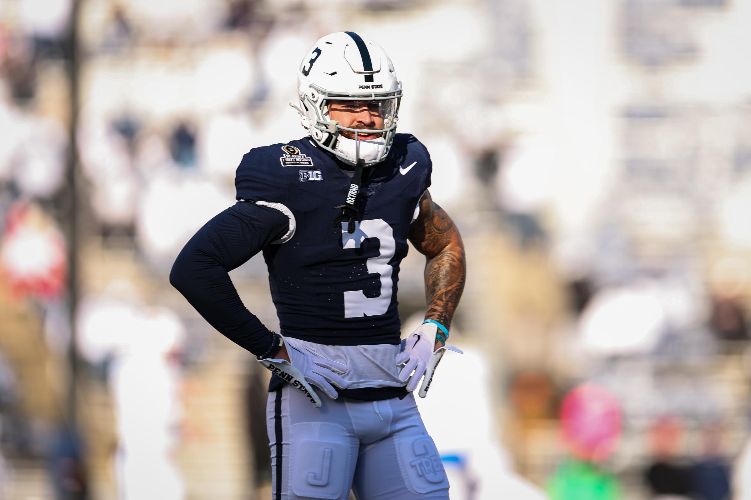 Julian Fleming #3 of the Penn State Nittany Lions looks on before the game against the Southern Methodist Mustangs at Beaver Stadium on December 21, 2024, in State College, Pennsylvania. | Source: Getty Images