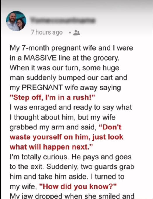 My wife, Mia, and I were at the grocery store on a Saturday afternoon, stuck in a massive line at the checkout. She was seven months pregnant, her belly round and prominent beneath her floral dress.