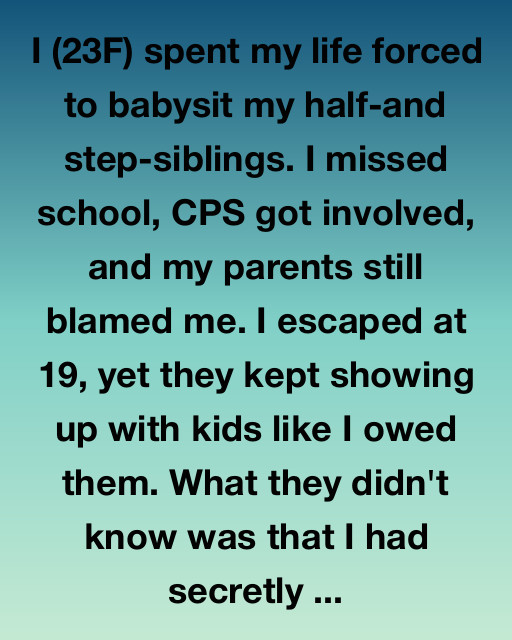 I (23F) spent my life forced to babysit my half- and step-siblings. I missed school, CPS got involved, and my parents still blamed me. I escaped at 19, yet they kept showing up with kids like I owed them. What they didn’t know was that I had secretly built an entirely new life they weren’t allowed to ruin.