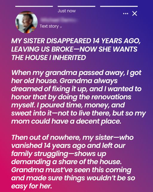 Then out of nowhere, my sister—who vanished 14 years ago and left our family struggling—shows up demanding a share of the house. Grandma must’ve seen this coming and made sure things wouldn’t be so easy for her.