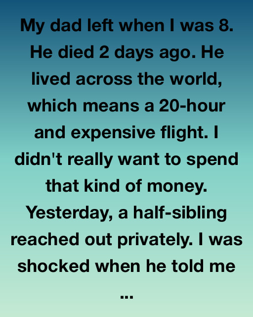 My dad left when I was 8. He died 2 days ago. He lived across the world, which means a 20-hour and expensive flight. I didn’t really want to spend that kind of money. Yesterday, a half-sibling reached out privately. I was shocked when he told me he wanted to meet in person, not over a call or text.