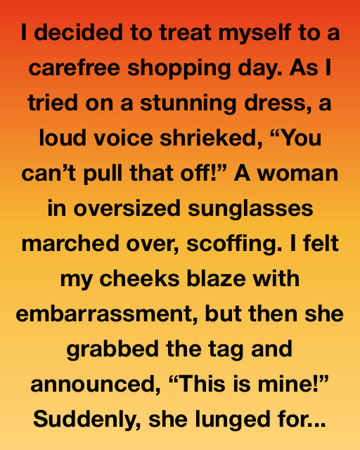 I decided to treat myself to a carefree shopping day. As I tried on a stunning dress, a loud voice shrieked, โ€œYou canโ€™t pull that off!โ€ A woman in oversized sunglasses marched over, scoffing. I felt my cheeks blaze with embarrassment, but then she grabbed the tag and announced, โ€œThis is mine!โ€ Suddenly, she lunged for the dress.