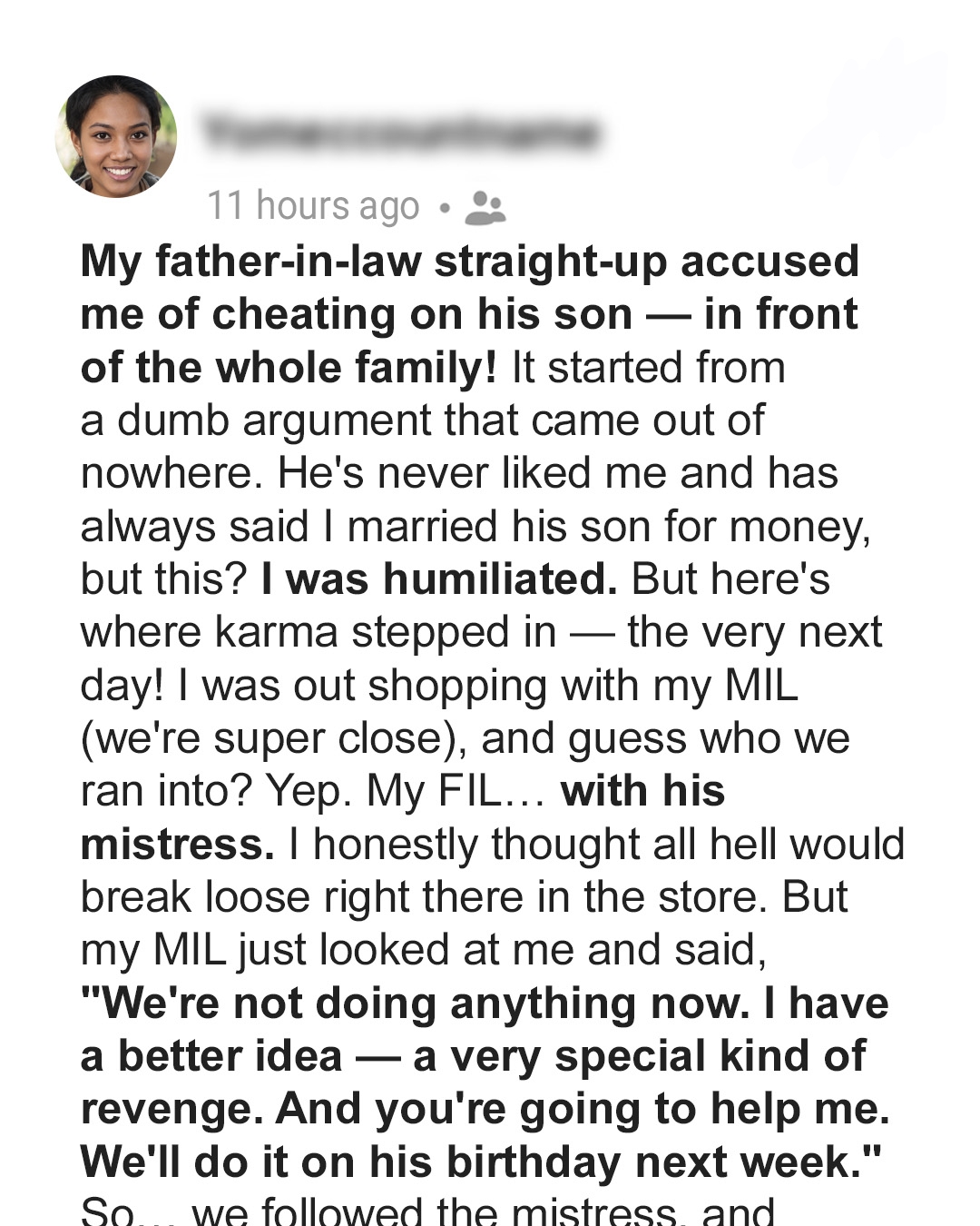 But Victor, my father-in-law, has never believed that. To him, I was a gold-digger with a carefully rehearsed smile and five-year plan.